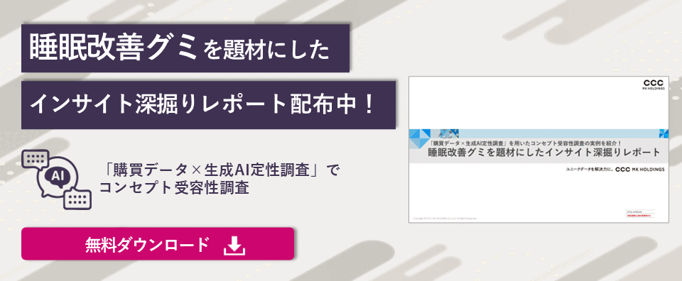 「購買データ×生成AI定性調査」を用いたコンセプト受容性調査の実例を紹介!睡眠改善グミを題材にしたインサイト深掘りレポート