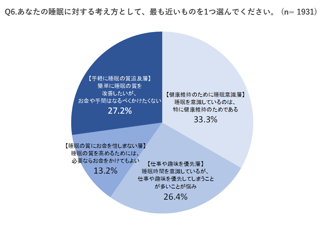 睡眠に対する考え方では「健康維持意識層」が最多、「睡眠の質にお金を惜しまない層」は実際には少ない